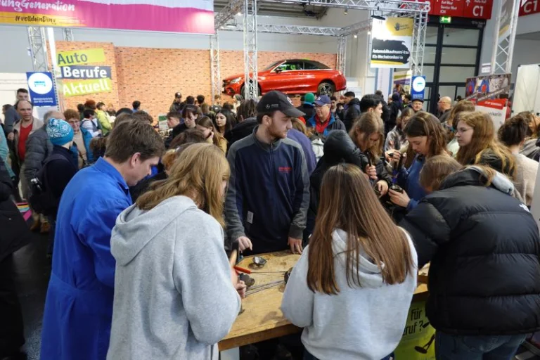Das Fazit entspricht dem, was die Fotos zeigen: Die Veranstaltung war ein voller Erfolg für die Nachwuchswerbung. Jede Menge Schüler*innen, Schulabgänger*innen und Berufsumsteiger*innen in der Orientierungsphase haben die Angebote genutzt. Aber auch viele Eltern und Lehrer*innen suchten das Gespräch mit den Auszubildenden und Meistern am Stand.