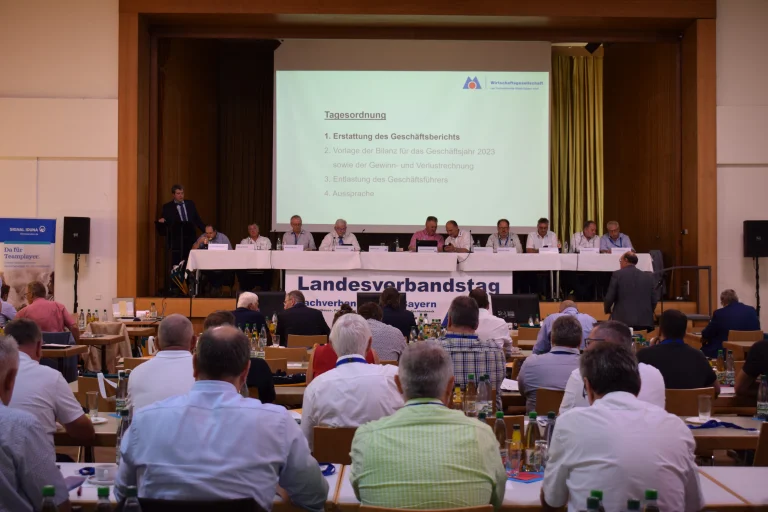Am Nachmittag des 07. Juni 2024 begann nach ausführlicher Darstellung der Gewinn- und Verlustrechnung der Wirtschaftsgesellschaft des Fachverbandes Metall Bayern mbH und Bestätigung der ordnungsgemäßen Rechnungsführung durch den Vertreter der Rechnungsprüfer Robert Höck, Friedberg, wonach der Geschäftsführung und dem Vorstand einstimmig Entlastung erteilt wurde, Teil 1 der Delegiertentagung. Landesinnungsmeister Detlef Lurz konnte 61 stimmberechtigte Vertreter aus den Mitgliedsinnungen begrüßen.
